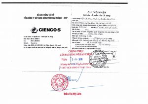 giấy chứng nhận sở hữu cổ phiếu Cienco5 của SCIC